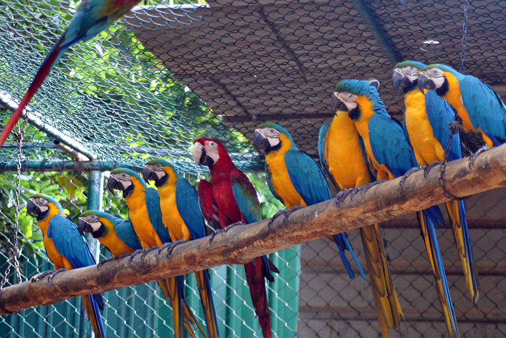 Chenuli-with-Sun-Parakeet-Aratinga-Solstitialis